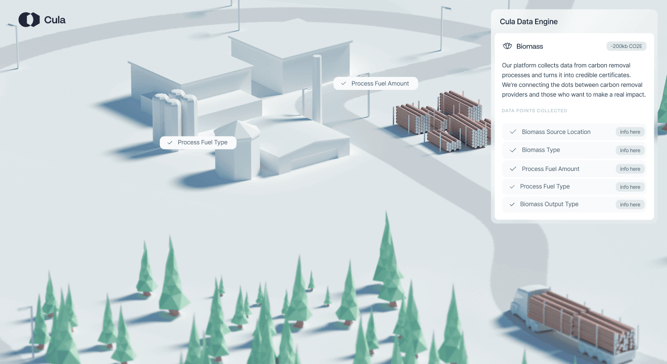 We immersed ourselves in a 3D world we created to explain how Cula's platform collects data from carbon removal processes and converts them into carbon credit certificates.